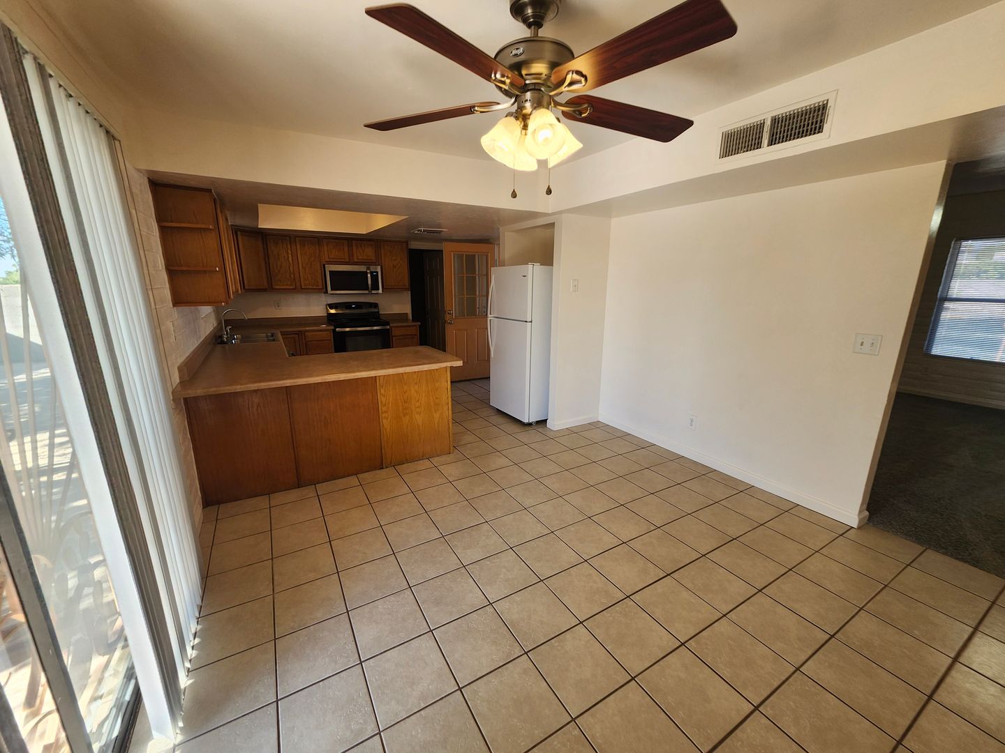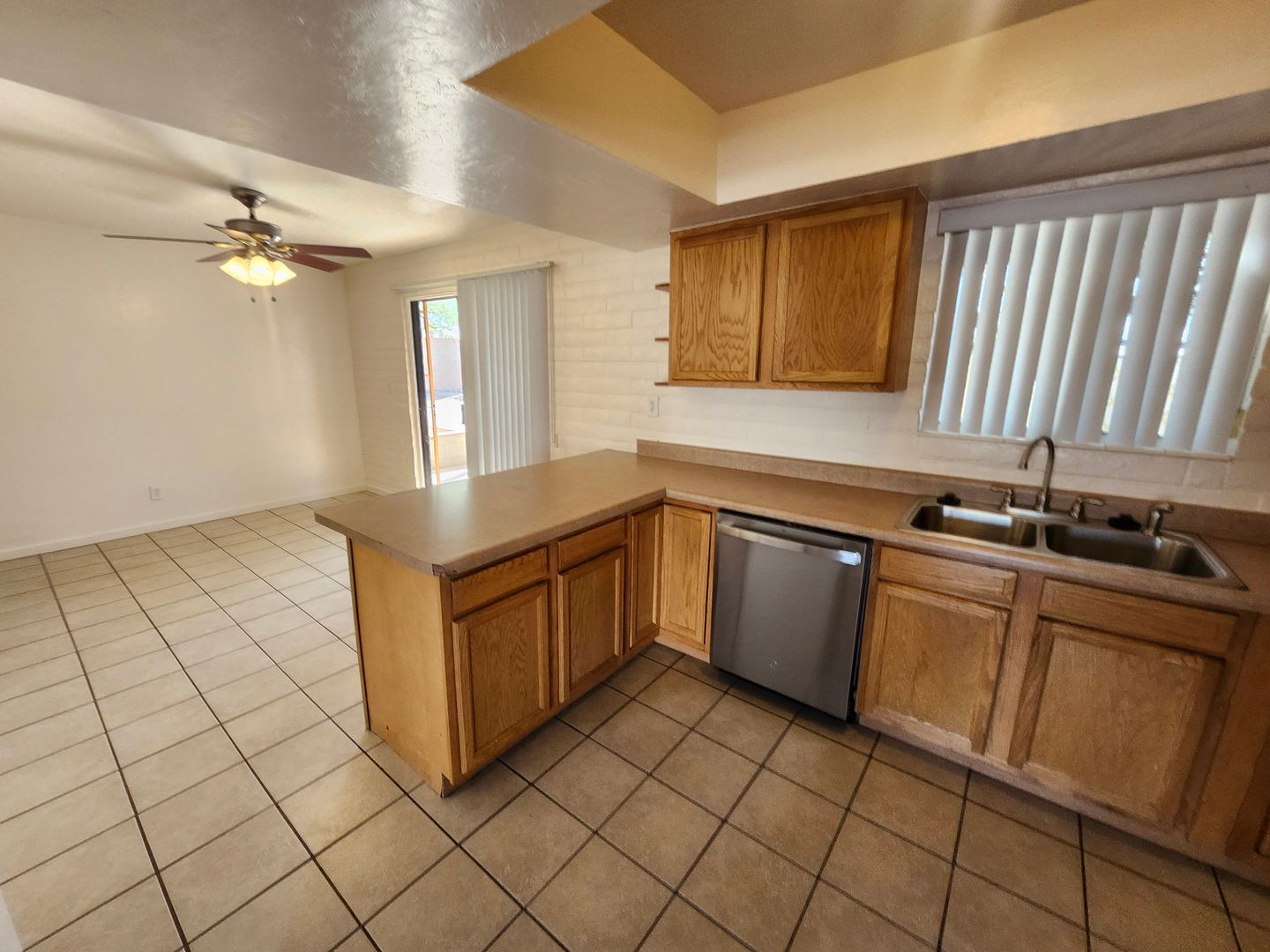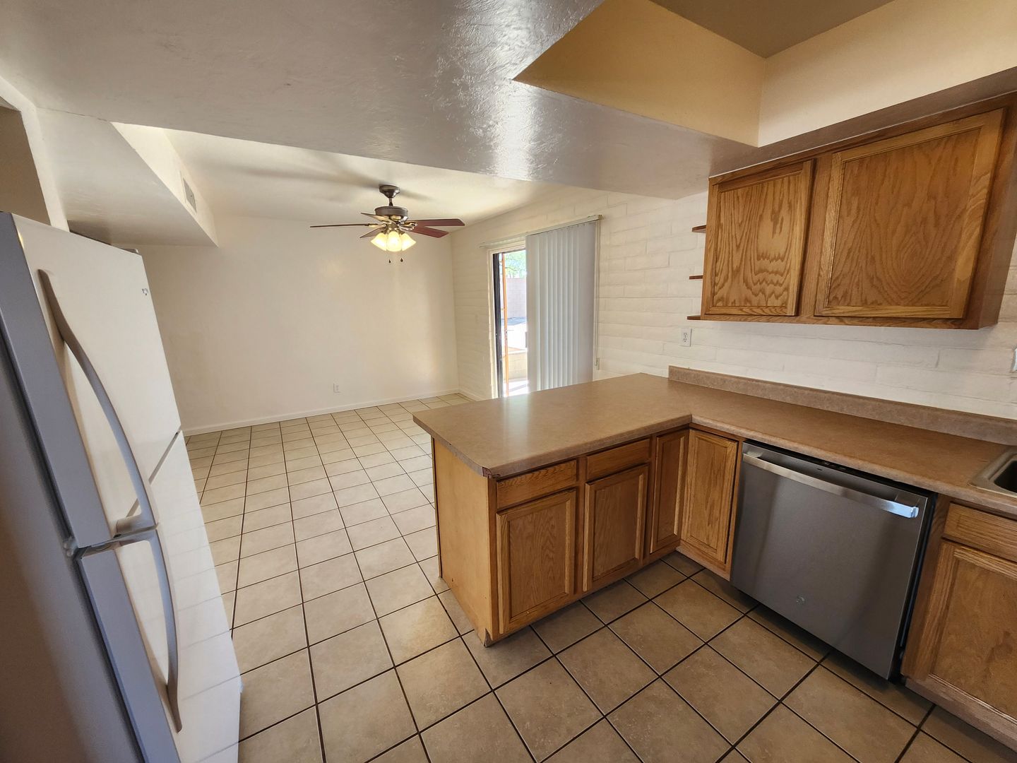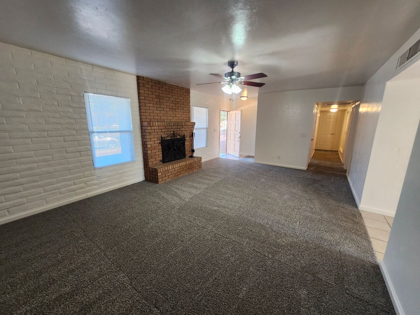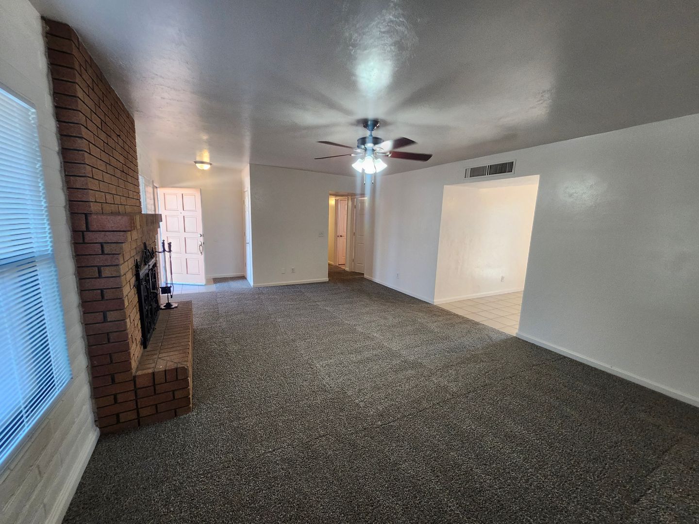 Beautifully maintained 4-bedroom, 2-bathroom home in East Tucson! Featuring brand-new carpet, fresh interior paint, and upgraded lighting throughout. Enjoy a spacious living room with a cozy fireplace, an eat-in kitchen with a breakfast bar, and a large laundry room for added convenience. The fenced backyard offers plenty of space to relax or entertain, complete with a covered patio. Additional highlights include A/C, ceiling fans throughout, and a 2-car carport with storage. Conveniently located just minutes from DMAFB, shopping, and bus lines. We do a credit, background and rental history check on all applicants, anyone over 18 must apply. Please call Daniel with questions or to schedule a showing. 520-777-6507 ext. 5 - Tucsonterritorypm.com for applications and walk thru video- please read thoroughly before applying. Tucson Territory represents the Owner of the property.