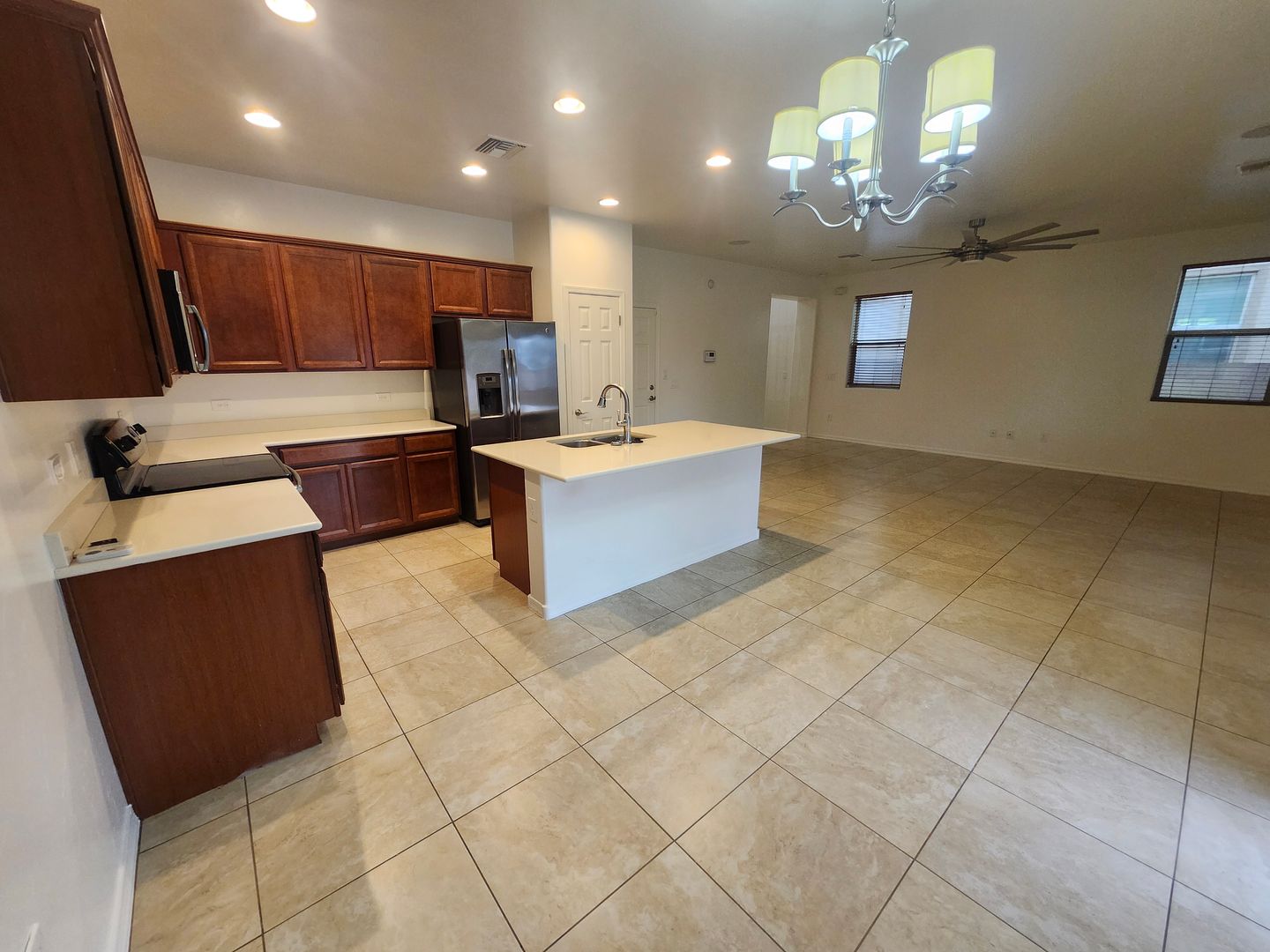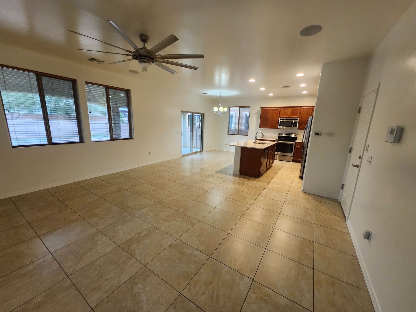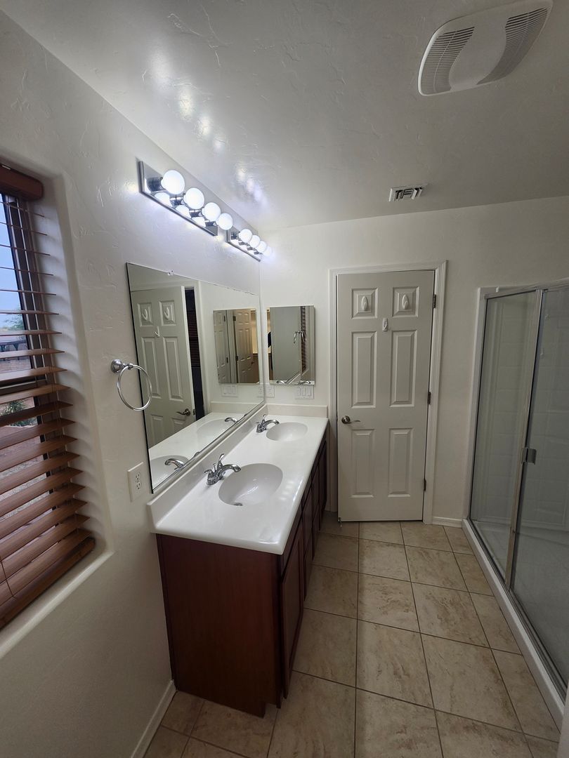 Modern and contemporary two-story D.R. Horton home located in the award-winning Vail School District. Freshly painted, this well-designed floor plan offers 3 bedrooms, 2.5 bathrooms, and a spacious loft—perfect for a home office, media room, or additional living space. Enjoy 20” tile flooring throughout the entire first floor and all wet areas upstairs, complemented by elegant 9-foot ceilings and an impressive 8-foot front entry door. The kitchen features rich dark wood cabinetry, a large center island, and stainless steel appliances, ideal for everyday living and entertaining. The upstairs primary suite includes dual sinks, a walk-in shower, and a generous walk-in closet. Step outside to a covered back patio for outdoor relaxation. Conveniently located with easy access to I-10 and close to all that Tucson has to offer. We do a credit, background and rental history check on all applicants, anyone over 18 must apply. Please call Daniel with questions or to schedule a showing. 520-777-6507 ext. 5 - Tucsonterritorypm.com for applications and walk thru video- please read thoroughly before applying. Tucson Territory represents the Owner of the property.