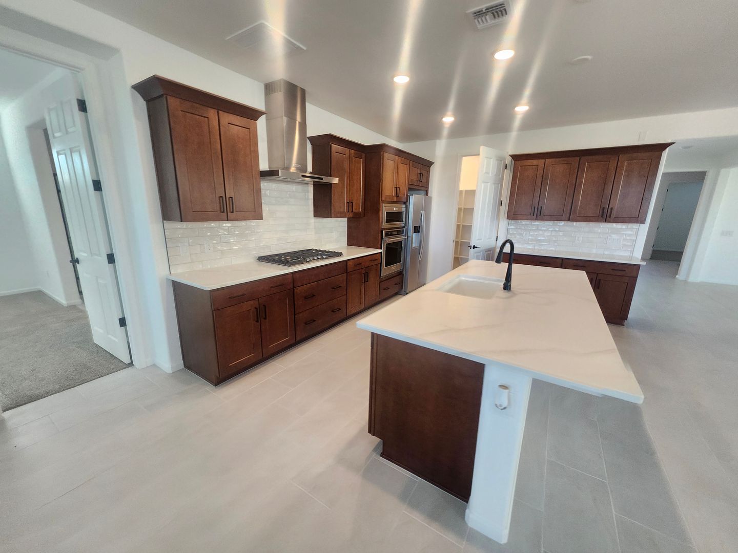 This brand new, 2489 sq. ft. stunning home offers an open and spacious floor plan with a neutral palette, plank ceramic tile throughout the main living areas, and carpet in the bedrooms. The gourmet kitchen is a true centerpiece, featuring granite countertops, stainless steel appliances, a 36” gas cooktop, breakfast bar, grande pantry, and ample storage—perfect for cooking and entertaining. Enjoy multiple living spaces including a formal living room, formal dining area, and a large TV room. The home also includes a dedicated office or guest suite with private bath near the front entrance for added versatility. The primary suite features an impressive walk-in closet, dual vanity, garden tub and a luxurious walk-in shower. Larger additional bedrooms, extra storage, 8 ft. doors, upgraded lighting, an insta-hot water heater, 240V charging outlet in the oversized 2.5-car garage. Breathtaking mountain views, cul de sac lot, Vail School District and the list goes on....We do a credit, background and rental history check on all applicants, anyone over 18 must apply. Please call Daniel with questions or to schedule a showing. 520-777-6507 ext. 5 - Tucsonterritorypm.com for applications and walk thru video- please read thoroughly before applying. Tucson Territory represents the Owner of the property.