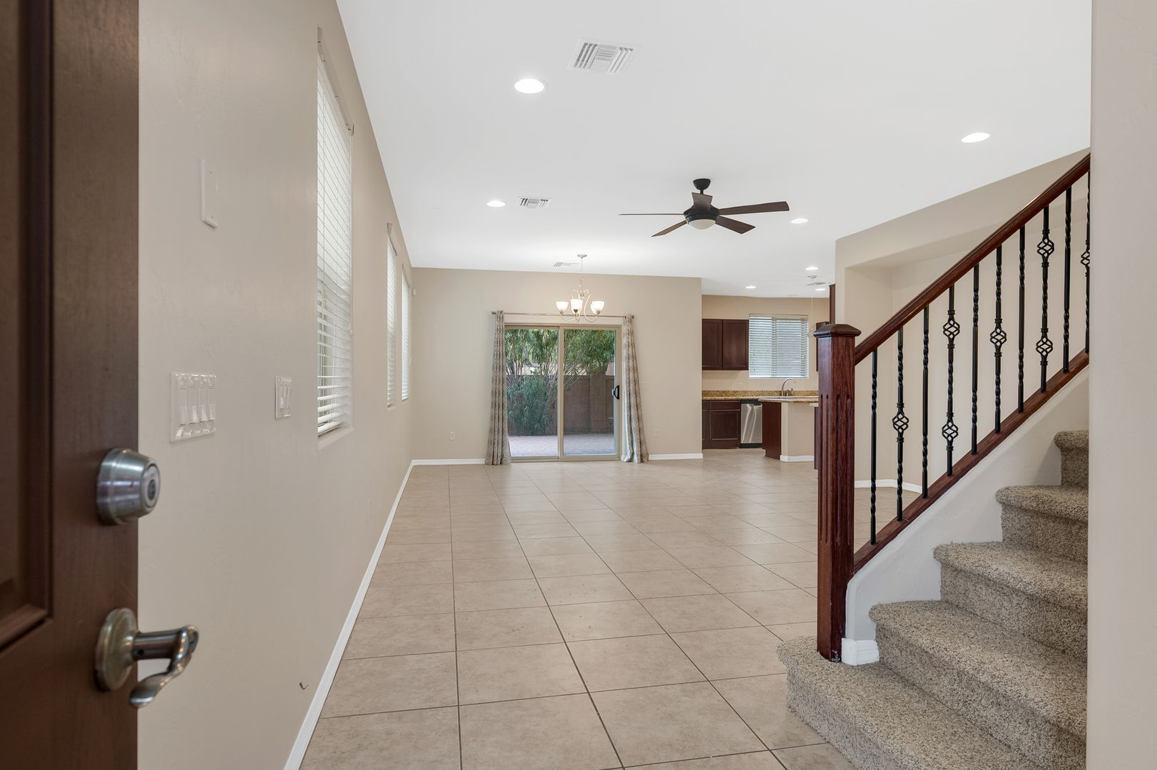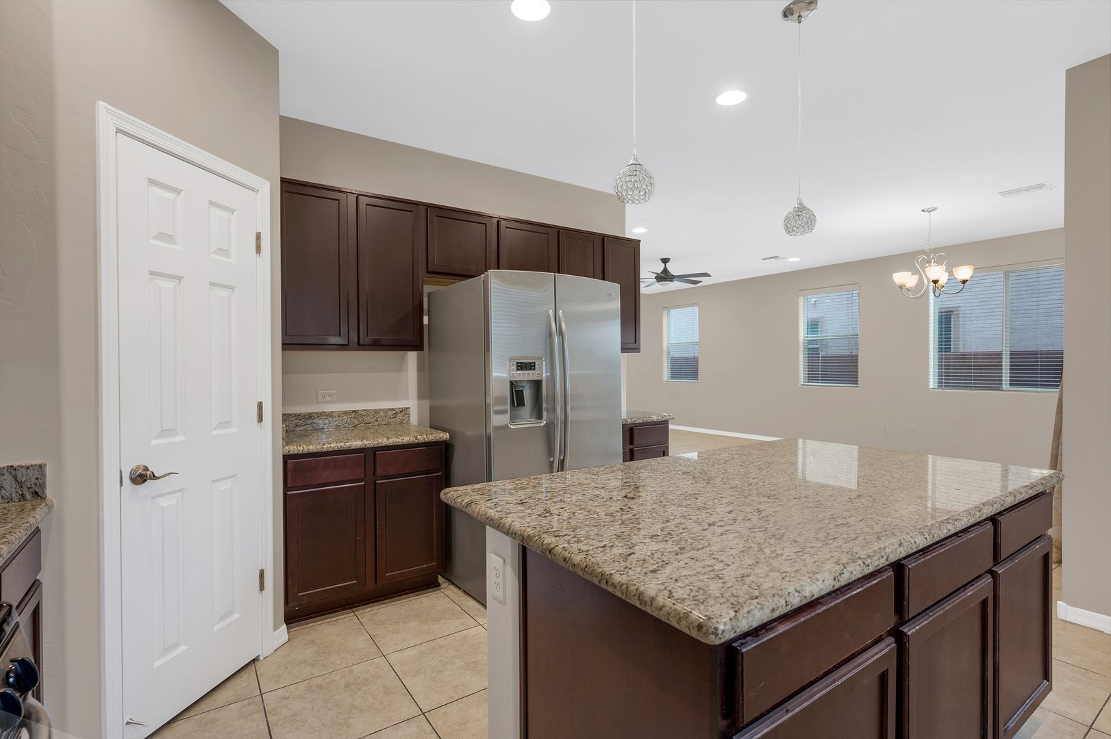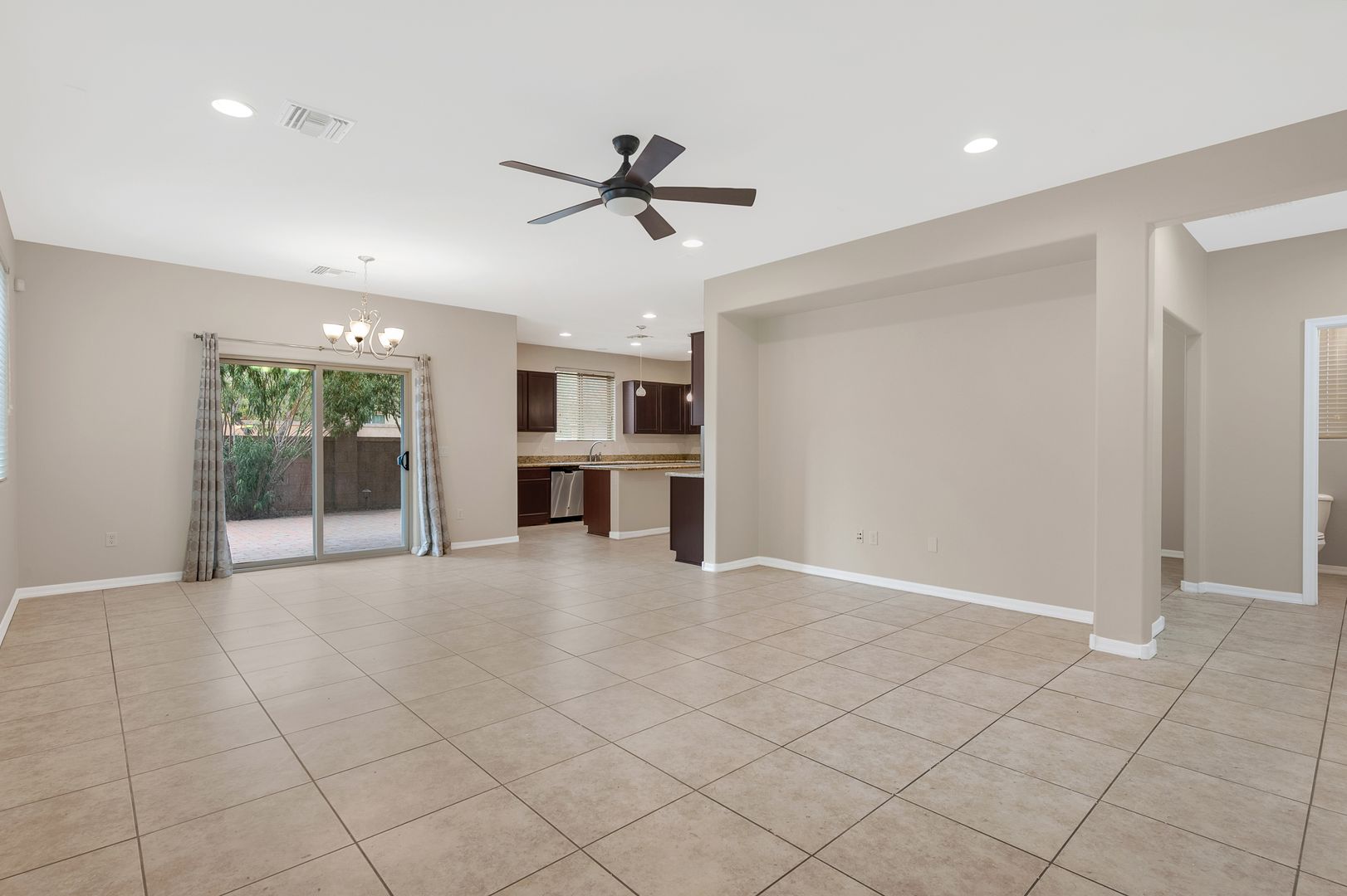 The grand primary suite offers a walk-in closet, dual vanity, garden tub, and separate shower. Additional highlights include upgraded lighting, ceiling fans throughout, a brick-paver backyard, and a 2-car garage. Enjoy all the incredible amenities Rancho Sahuarita has to offer — including a community pool, fitness center, basketball courts, putting green, and so much more.