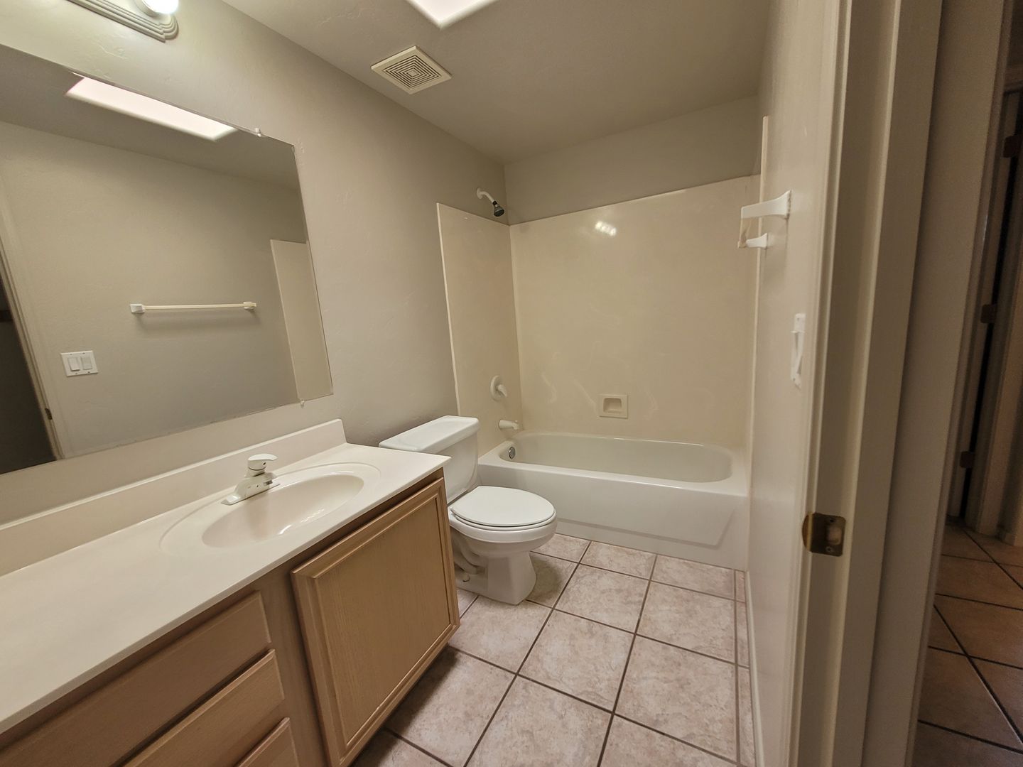The generous primary bedroom includes its own private bathroom, and the larger secondary bedroom also features newer carpet. Relax on the covered patio overlooking the fully enclosed backyard. Additional highlights include a 2-car garage, A/C, washer/dryer hookups, trash service included, and access to the community pool. We do a credit, background and rental history check on all applicants, anyone over 18 must apply. Please call Daniel with questions or to schedule a showing. 520-777-6507 ext. 5 - Tucsonterritorypm.com for applications and walk thru video- please read thoroughly before applying. Tucson Territory represents the Owner of the property.
