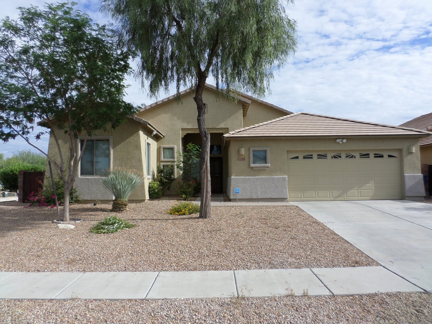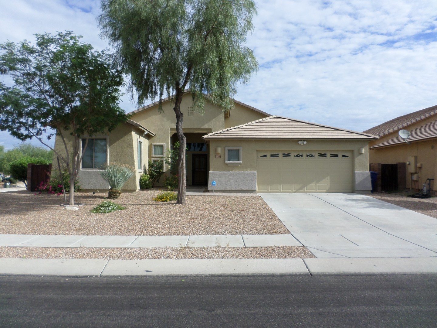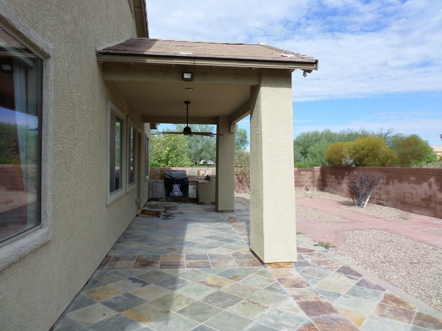 Welcome home! Spacious and inviting open floor plan featuring three bedrooms and two full baths. The kitchen is a chef's dream with a center island, granite countertops, tile backsplash, ample cabinetry, and a walk-in pantry. The split floor plan ensures privacy, with a Primary suite that boasts a double vanity and a generous walk-in closet. Elegant ceramic tile runs through the main living areas, while carpeting enhances the great room and bedrooms. Additional highlights include power window blinds and ceiling fans throughout the home. Step outside to a beautifully landscaped backyard with a covered patio and built-in BBQ—perfect for entertaining. Conveniently located near D/M Air Force Base, shopping, and I-10. We do a credit, background and rental history check on all applicants, anyone over 18 must apply. Please call Daniel with questions or to schedule a showing. 520-777-6507 ext. 5 - Tucsonterritorypm.com for applications and walk thru video- please read thoroughly before applying. Tucson Territory represents the Owner of the property.