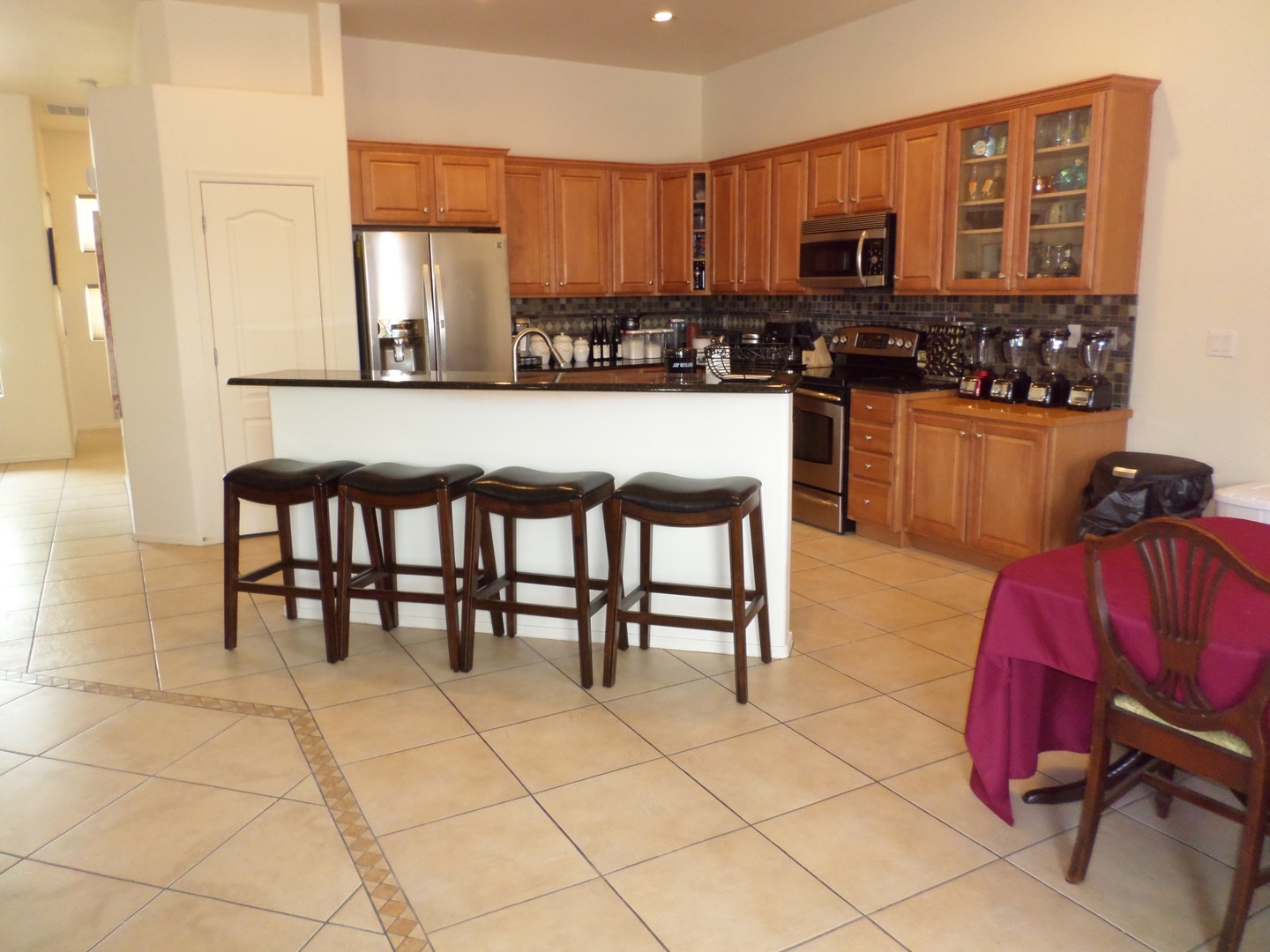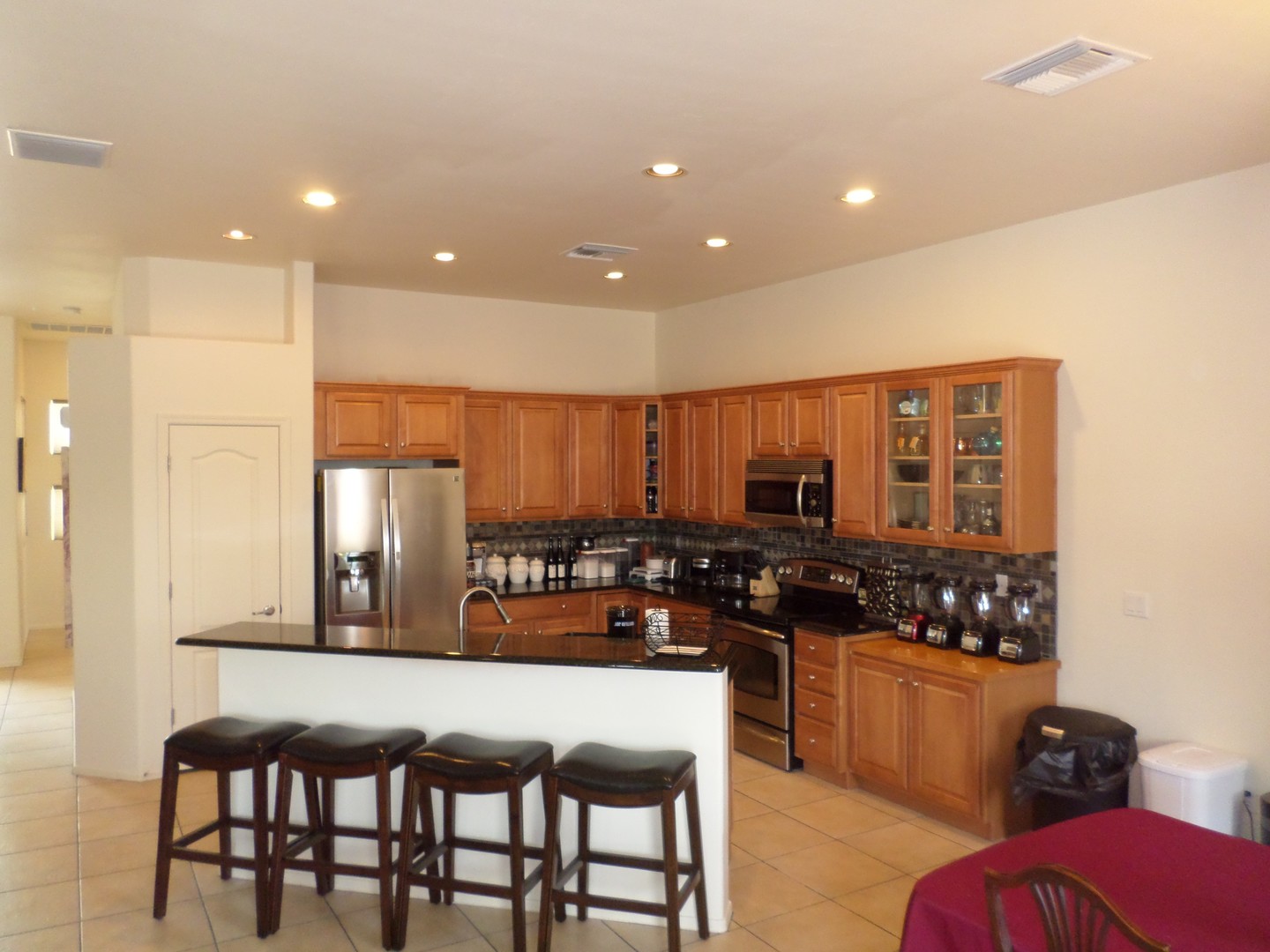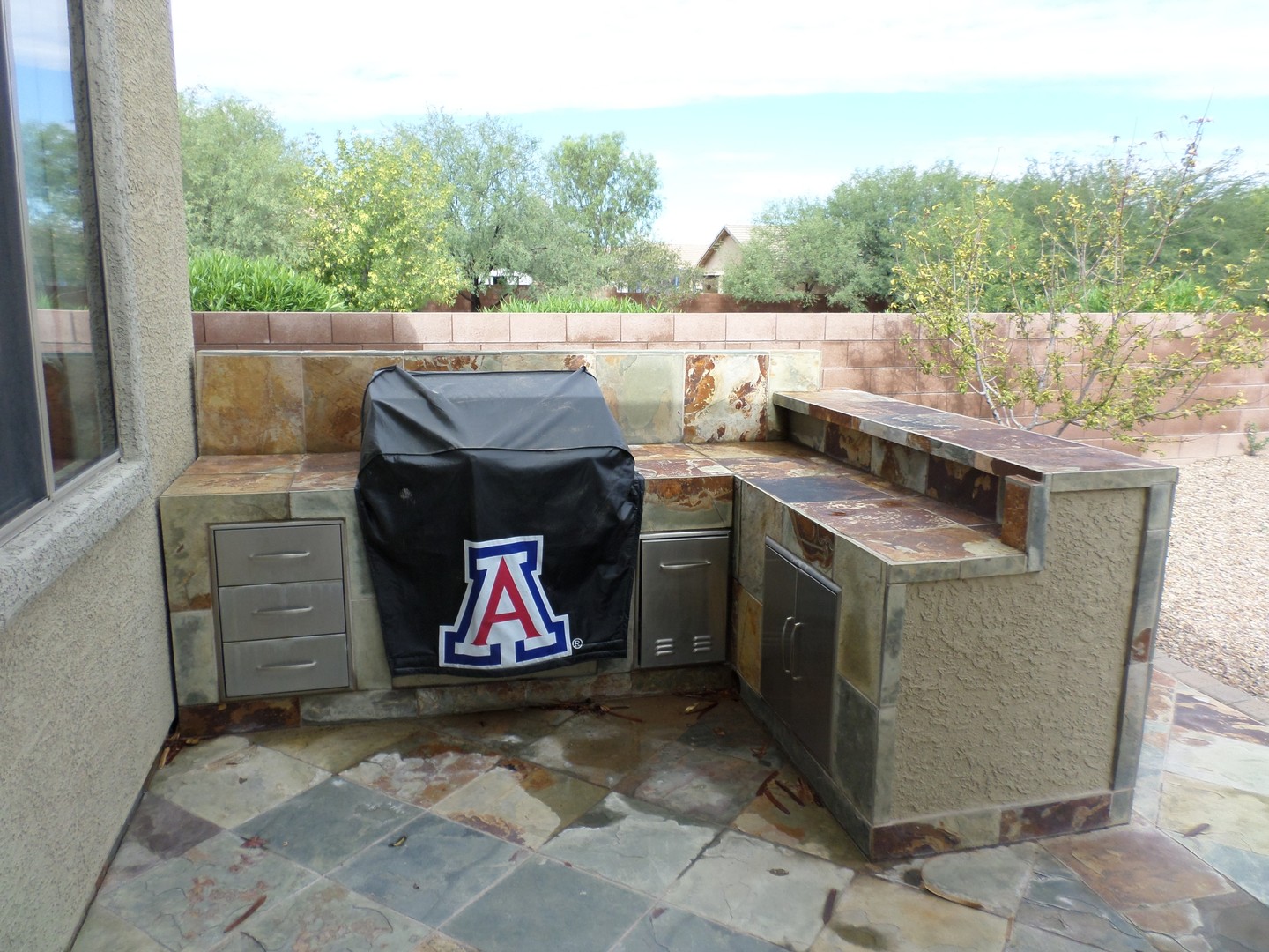 Welcome home! Spacious and inviting open floor plan featuring three bedrooms and two full baths. The kitchen is a chef's dream with a center island, granite countertops, tile backsplash, ample cabinetry, and a walk-in pantry. The split floor plan ensures privacy, with a Primary suite that boasts a double vanity and a generous walk-in closet. Elegant ceramic tile runs through the main living areas, while carpeting enhances the great room and bedrooms. Additional highlights include power window blinds and ceiling fans throughout the home. Step outside to a beautifully landscaped backyard with a covered patio and built-in BBQ—perfect for entertaining. Conveniently located near D/M Air Force Base, shopping, and I-10. We do a credit, background and rental history check on all applicants, anyone over 18 must apply. Please call Daniel with questions or to schedule a showing. 520-777-6507 ext. 5 - Tucsonterritorypm.com for applications and walk thru video- please read thoroughly before applying. Tucson Territory represents the Owner of the property.