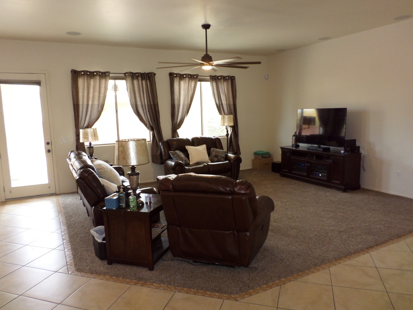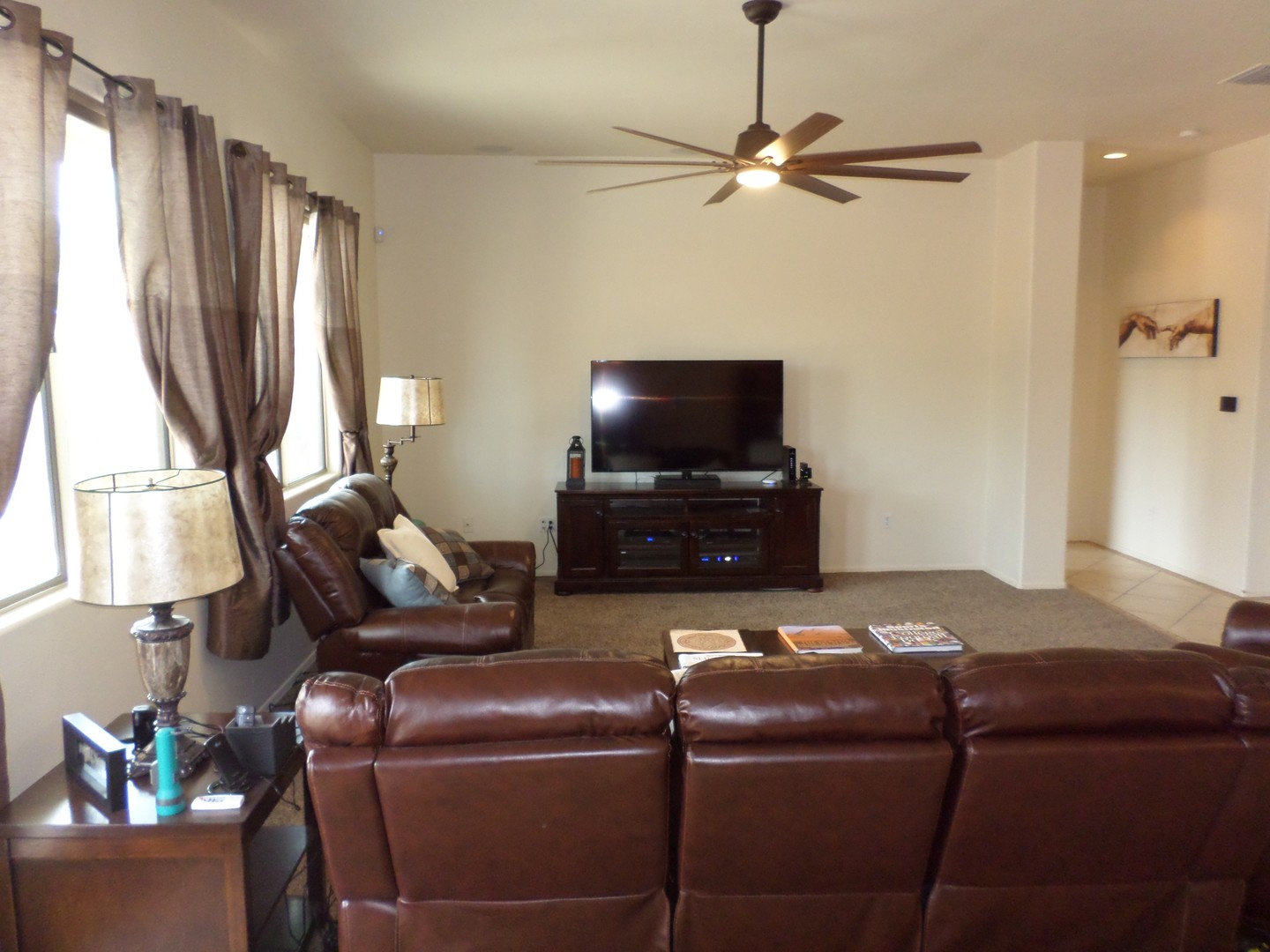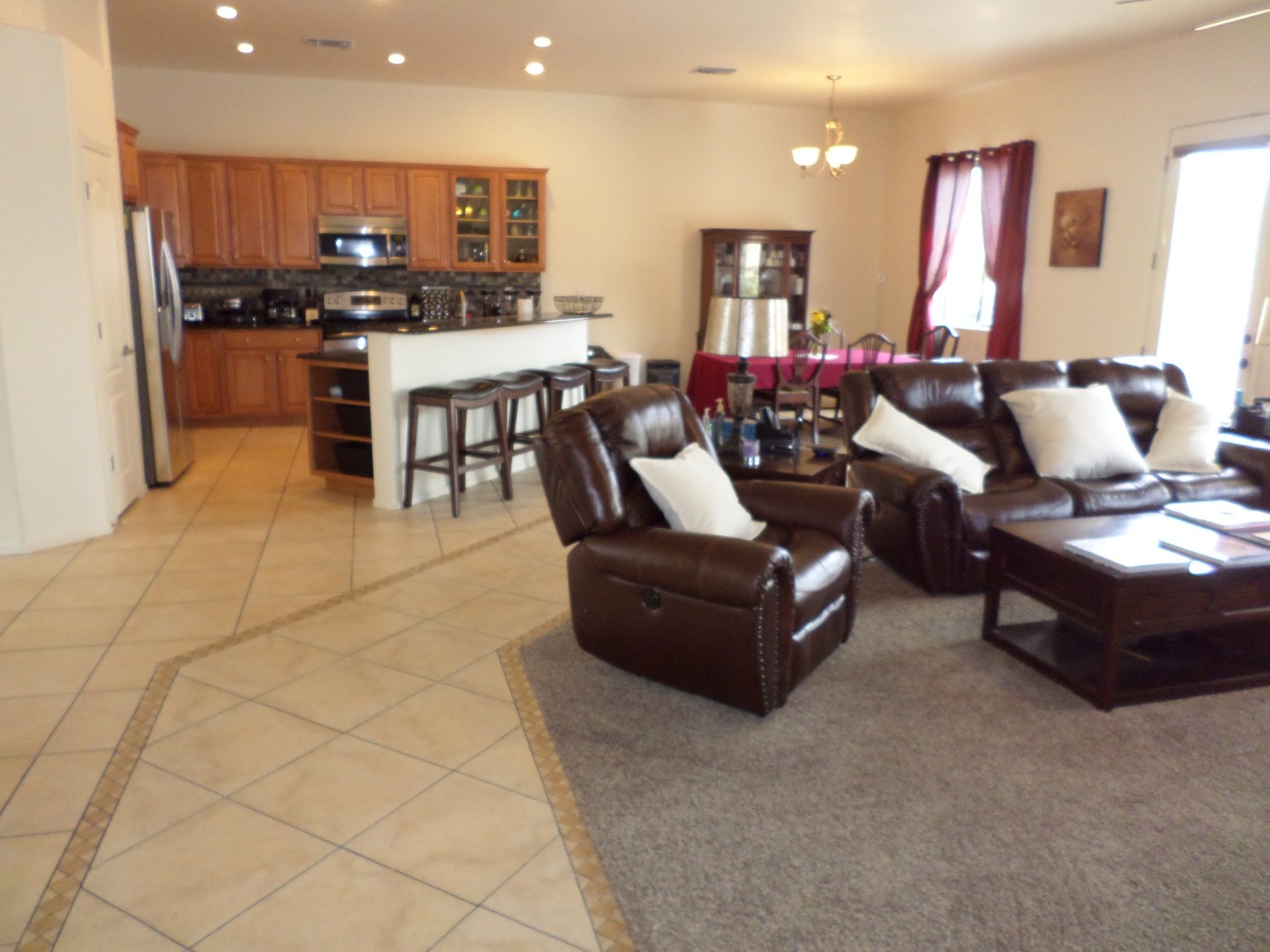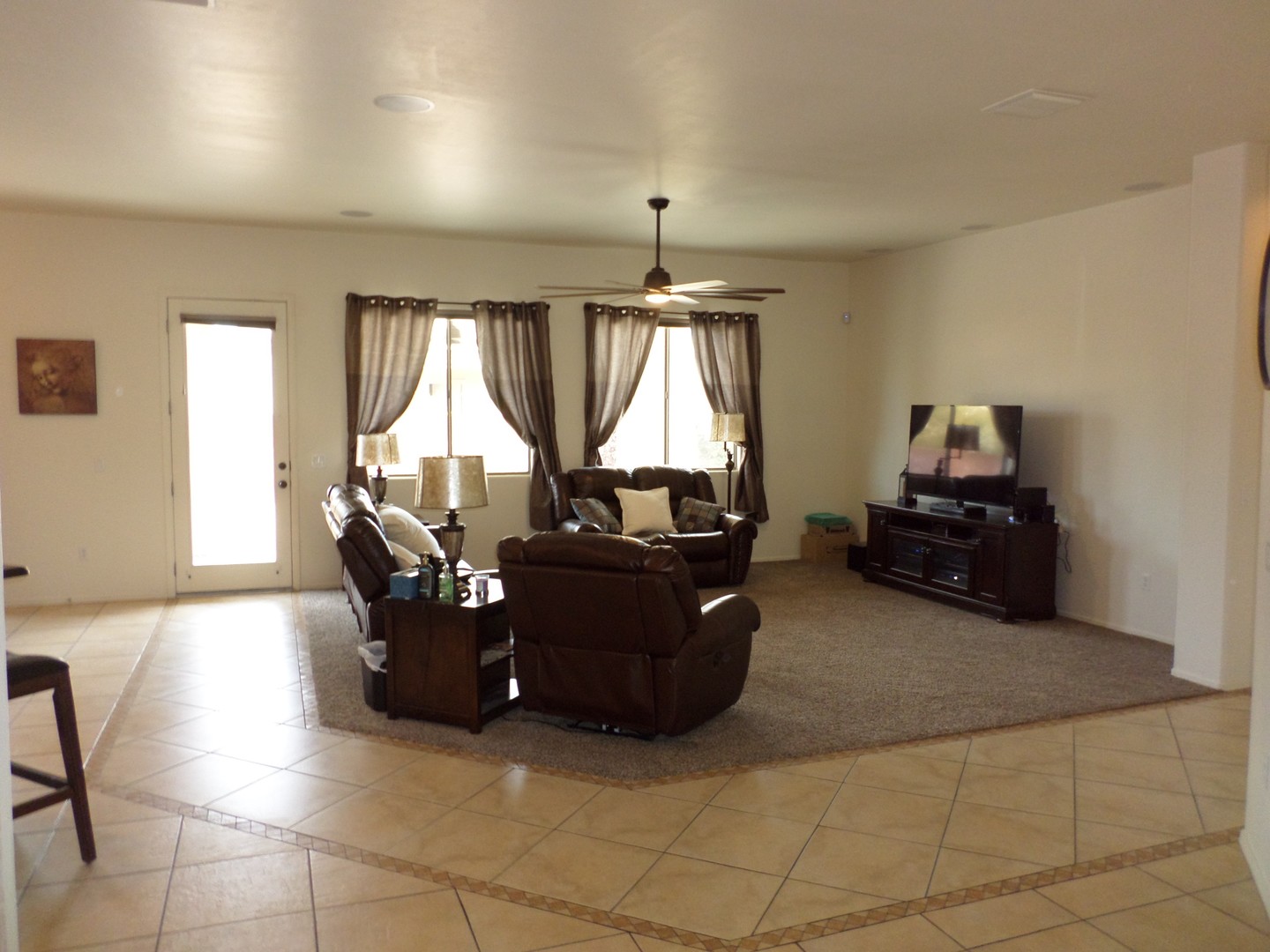 Spacious and inviting open floor plan featuring three bedrooms and two full baths in Valencia Reserve.